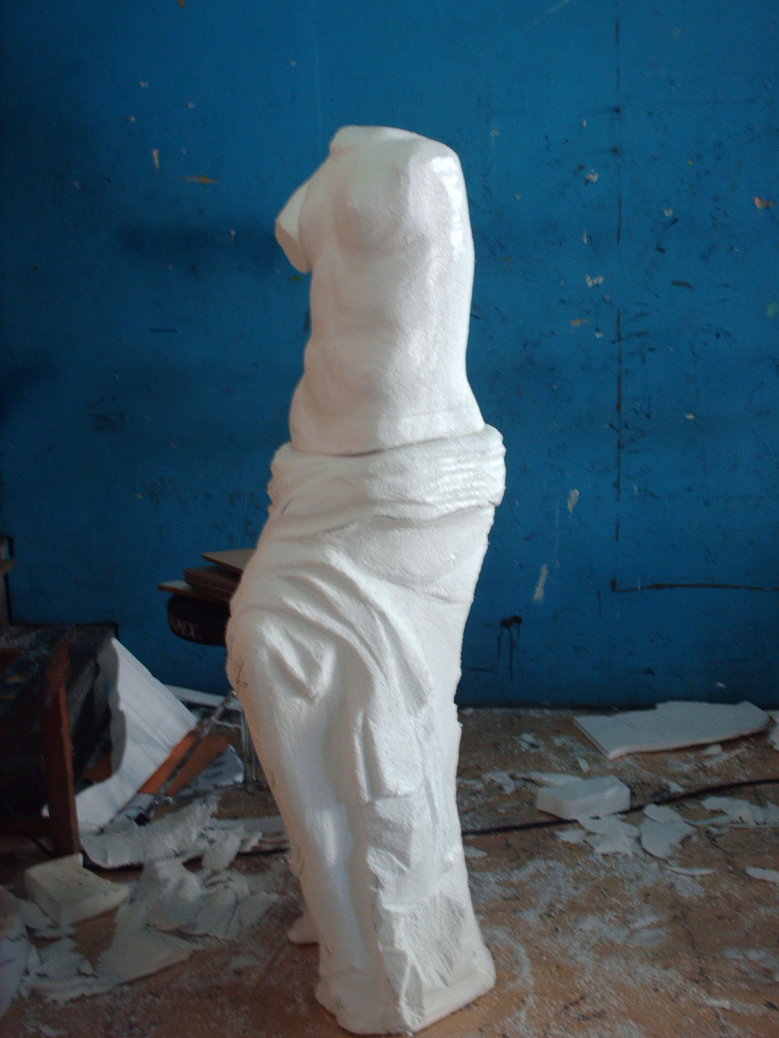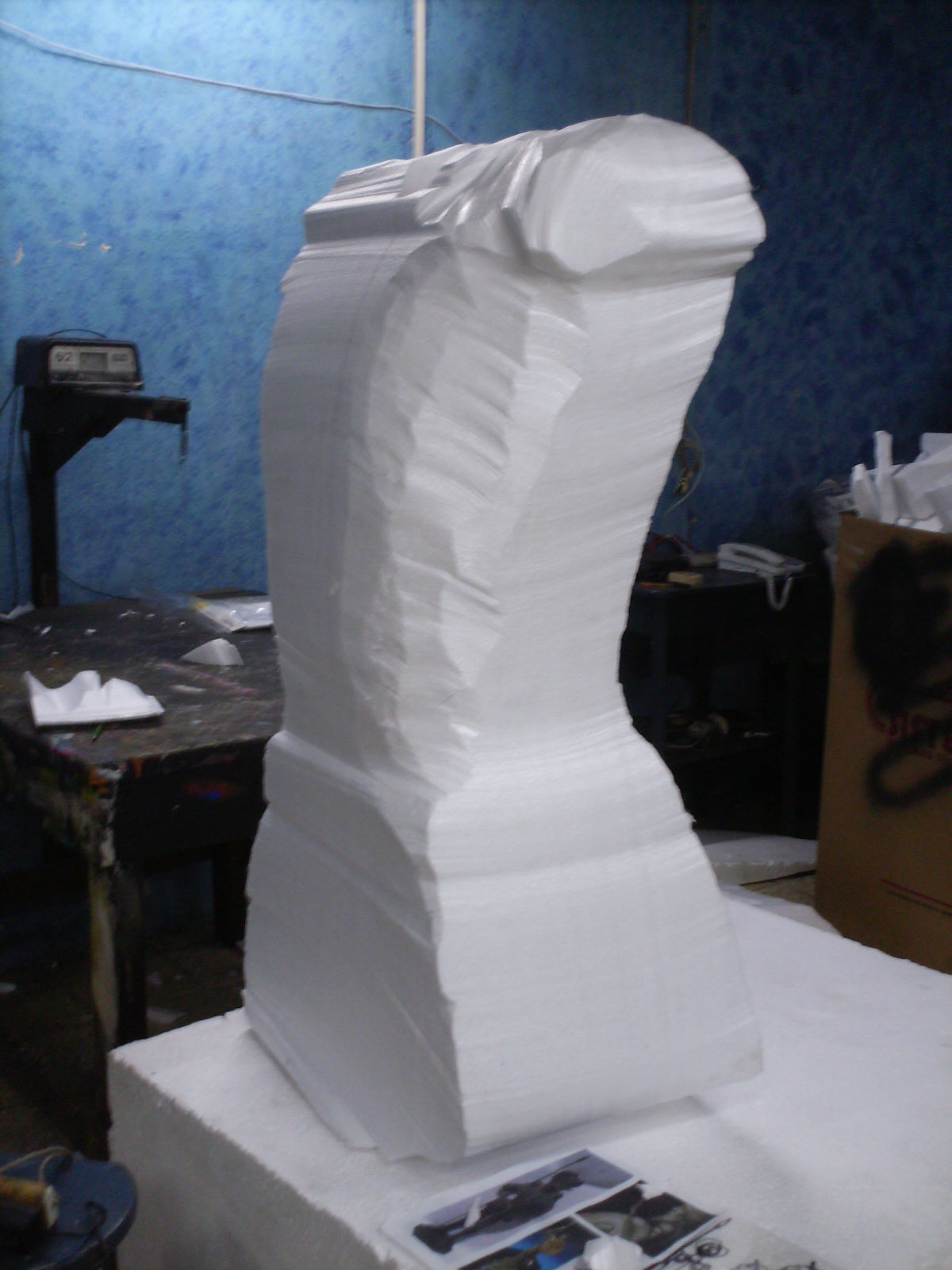 Esta fue el primer encargo de una escultura en duropor a gran escala. Fue un reto manejar la proporción y los detalles en el material. Pero luego de esta hubieron mas pedidos asi que el resultado llenó las expectativas.