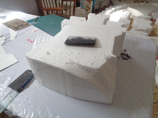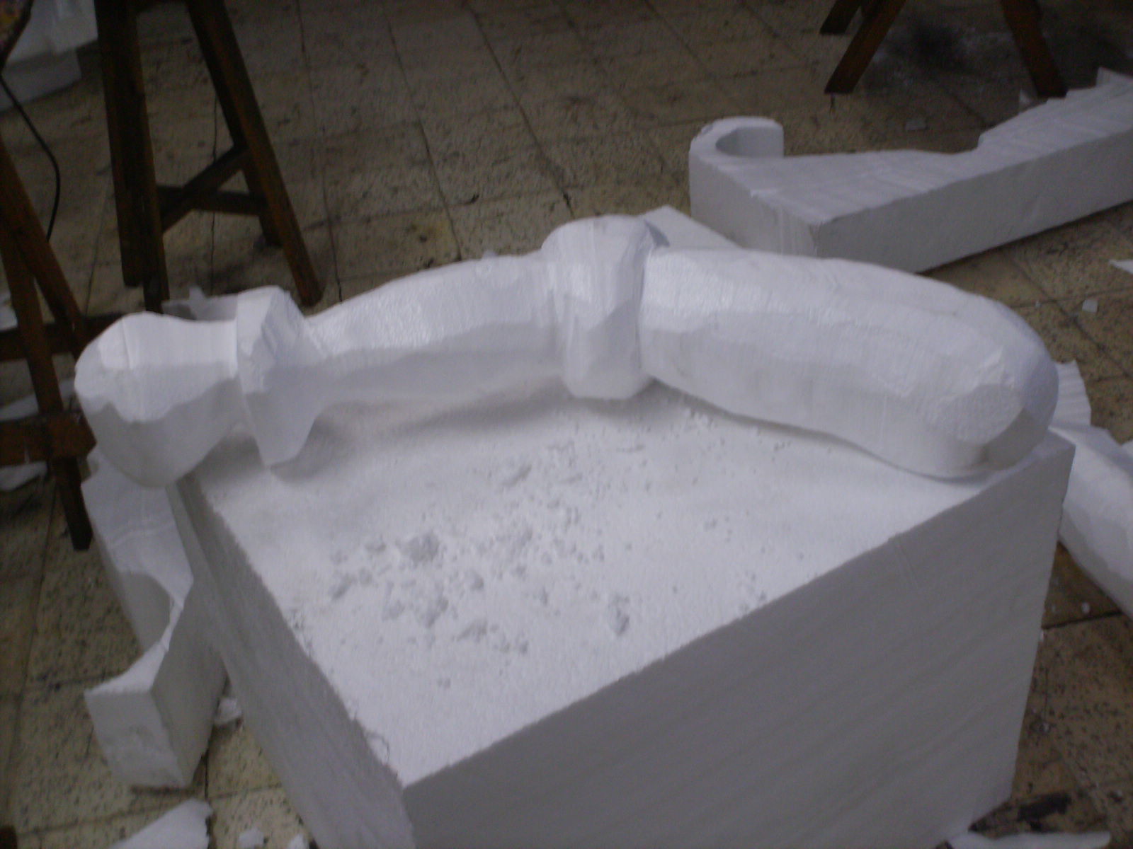 This piece was made as a comission of a banking institution. Carved in styrofoam and painted in acrylic. The height was 50 cms width 40 cms and 35 cms in depth. Was delivered in 2006 and is part of the banking collection.