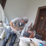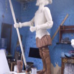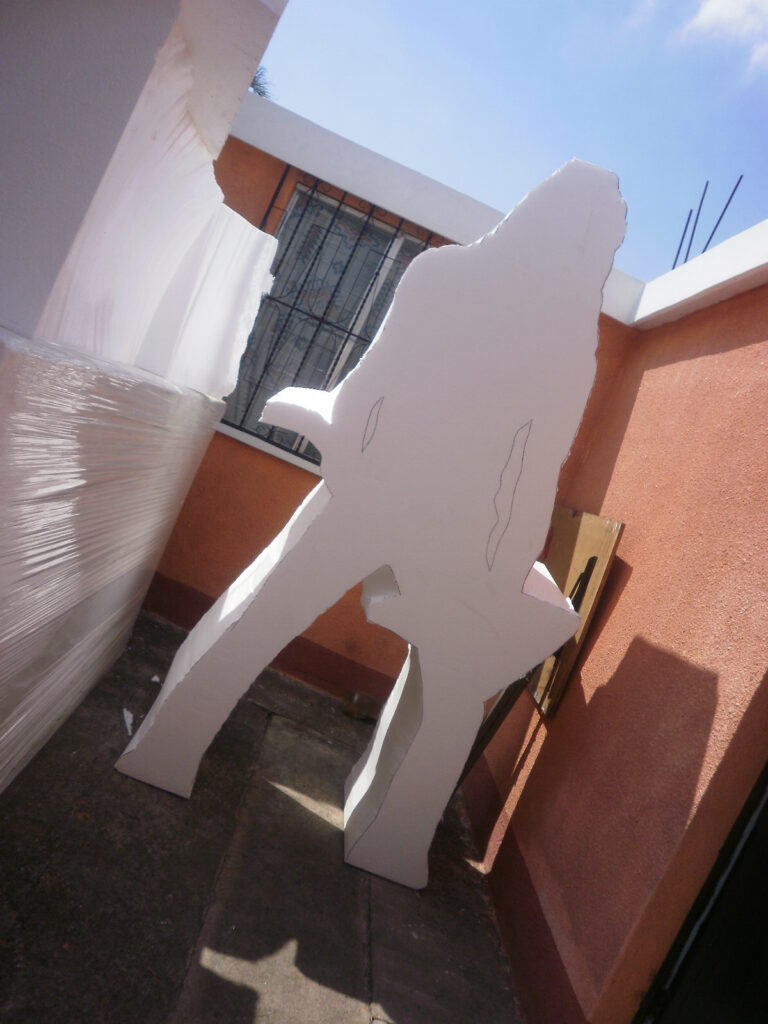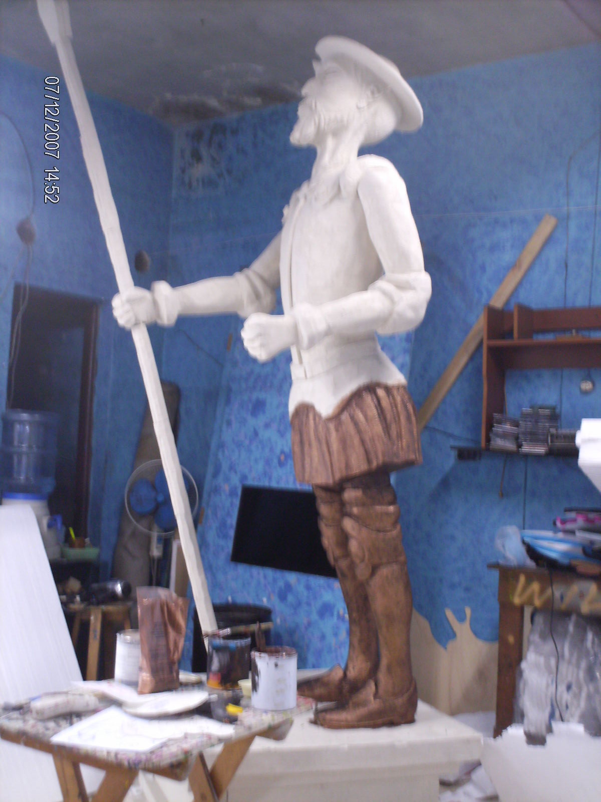 Don Quixote was made for a banking institution carved out of duropor and painted with acrilyc. The height is 2.5 mtrs.