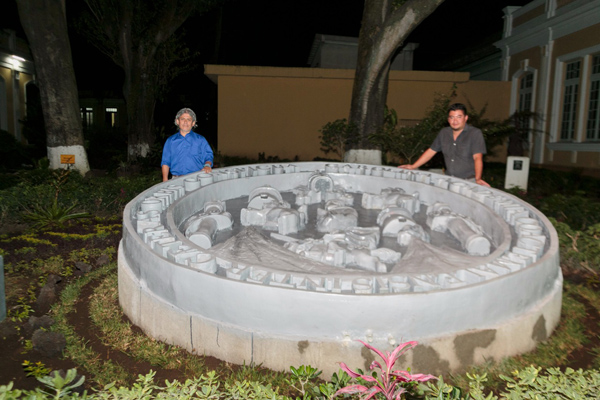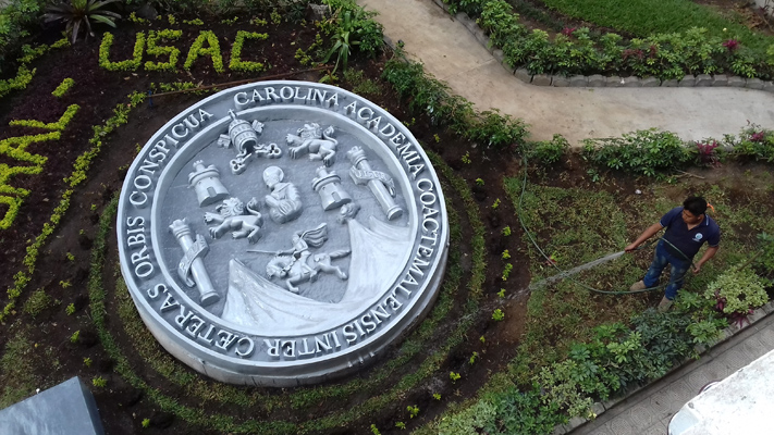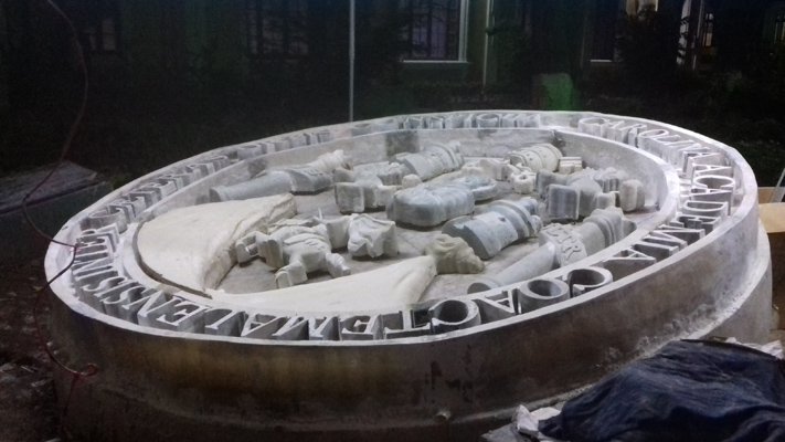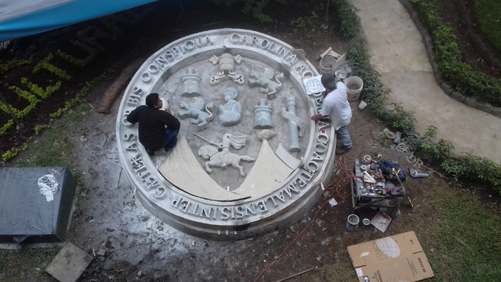 It´s the ultimate piece of work made by Rod Alvarez. It consist in the insignia from the National University of San Carlos of Guatemala. It is made in resine and iron, and has a diameter of 3.45 meters and a depth of 25 cenimeters. It was his graduate project to obtein the bachelor degree in art in november 20017.