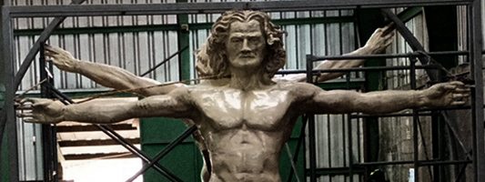 Es una representación escultórica del icónico dibujo de Leonardo Da Vinci «El hombre de Vitruvio» la cuál es una obra de mas de 3 metros de altura. Con ella pretende interesar al público en general en el arte visual nuevamente, y al mismo tiempo inspirar a jóvenes artistas a crear obras de calidad.